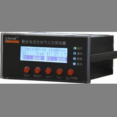 1 概述 ARCM剩余电流式电气火灾监控装置安装在0.4kV低压配电系统中,用于检测TN-C-S、TN-S及局部TT系统中的剩余电流、温度等有关电气火灾隐患产生的电气参数,当被保护线路中监控装置参数超过报警设定值时,能发生报警和控制信号,以便消除剩余电