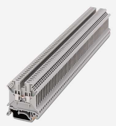 端子带通用安装脚,可安装在G型,u型或U型导轨上1.端板2.固定式桥接件用于端子中央实现横向桥接,螺钉头带绝缘圈,10位,可分,带10枚螺钉3.隔片用于相邻桥接件间的电气隔离;可事后插入;不占导轨的任何空间4.快速标记条10位5.螺丝刀