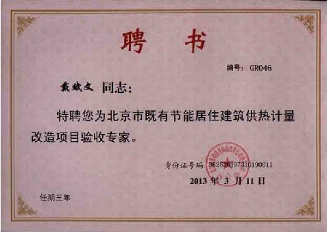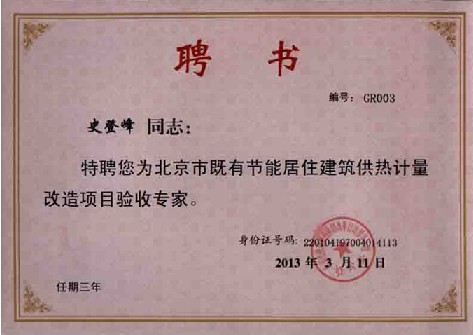为此,北京城建科技促进会通过公开征集和审核的方式确定选定“北京既有节能居住建筑供热计量改造项目验收专家”。非常荣幸,硕人时代戴总、史总和邓总(排名不分先后)获此殊荣,这将促使公司对供热计量工作做出更大的贡献。