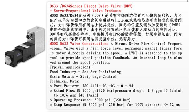 美国穆格MOOGD633,D634系列直动式伺服阀 型号: D6... |