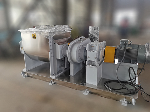 河器2000L螺杆出料捏合机 液态硅胶生产设备介绍: 河器2000L螺杆出料捏合机 液态硅胶生产设备介绍: 液态硅胶生产设备--捏合机说明: 捍合机广泛应用干高粘度,高弹塑性物料的混炼,捍合,破碎,搅拌,硫化,重新聚合等,捏合机具有搅拌均匀,无死角,捏合效率 高等优点。捏合机其功能全,品种多,应用十分广泛,特别适用于口香糖、泡泡糖、牙膏、塑料、橡胶、硅橡胶、染料、颜料、油墨、食品胶 基、医药药剂,建筑涂料,碳素,纤素,音粘度密封胶,中性玻璃胶,铝银浆,硅胶,热熔胶爱,纸浆,纤维素,电池浆料,染料,有 机硅树脂,化妆品等行业。我公司工艺要求,可制成真空,压九、常压一种类型。加热则采用夹套,蒸汽和电力热等方法。出料方式有液压 翻缸、球阀和螺杆等 捏合机工作原理: 捍合机主要是由混担部分、机座部分、液压系统,传动系统和电控系统等五大部分组成,液压系统由一台液压站来操纵大油缸,来完成 启闭功能,液压系统由一台液压站来操纵油缸,来完成翻缸、启盖等功能,细节参数可以由用户任意选择和要求,操作方便、可靠。传动系统 由电动机、减速机和齿轮组成,根据捏合机的型号配套电机。捏合机传动部分,是由电机,同步转速,经弹性联轴器至减速机后,由输出装置传 动快浆,使其达到规定的转速,也可由变频器进行调速。 捍合机拥有两个》型桨叶,两个桨叶的速度是有差别的,根据不同的工艺可以设定不同的转速,最常见的转速是42/28转每分钟。捍合机可 以根据需求设计成加热和不加热形式,换热方式通常有:电加热,蒸汽加热,循环热油加热,循环水冷却等。捏合机出料方式有液压翻缸倾倒. 球阀出料,螺杆挤出等。缸体及浆叶与物料接触部分均采用SUS304不锈钢制成,确保产品质量。 河器2000L螺杆出料捍合机适用场合: 密封胶 硅橡胶 玻璃胶 硅胶 有机硅 热片胶 改性淀粉 门香糖 泡泡糖 纸浆 纤维毒 电池 油黑 新料 染料 医药 树 脂,塑料,硫化橡胶、化妆品,CMC,胶粘剂等行业。您可以提出您所需要的处理量,设备形式,规格要求或您需要加工的物料的性质 河器的销售工程师会提供让您满意的方案