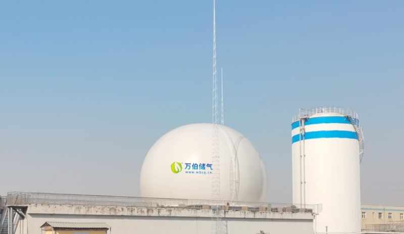 沼气双膜储气柜主要包括三部分:气柜主体、内膜保护器、K6控制器