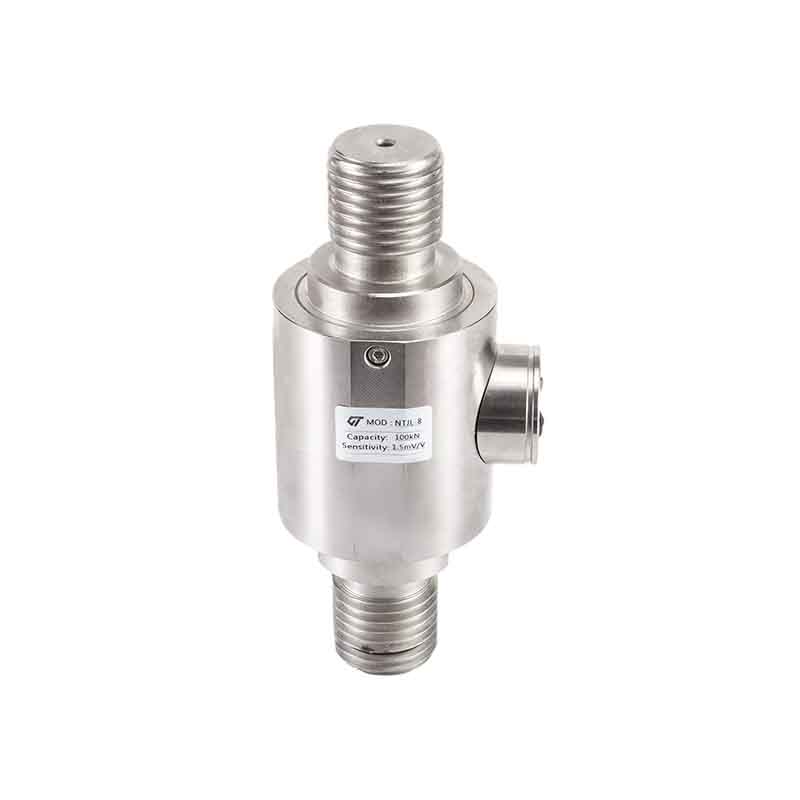 NTJL-8柱式外螺纹拉力传感器,又叫柱式外螺纹拉压力传感器、柱式外螺纹称重传感器、柱式外螺纹测力传感器、柱式外丝拉力传感器、大吨位柱式外丝拉力传感器等。NTJL-8柱式外螺纹拉力传感器,量程范围广,安全可靠。适用于电子衡器、起吊装备及各类力值的测力与控制。 技术参数 额定载荷: 100,200,300,500,700,1000,2000,3000(kN) 综合精度: 0.05~0.1%F.S 灵敏度: 1.5~2.0mV/V 蠕变: ±0.05%F·S/30min 零点输出: ±1%F·S 零点温度影响: ±0.05%F·S/10℃ 输出温度影响: ±0.05%F·S/10℃ 工作温度: -20℃~+65℃ 输入阻抗: 380±30Ω或750±50Ω 输出阻抗: 350±3Ω或700±5Ω 绝缘电阻: >5000 MΩ 安全过载: 150%F·S 供桥电压: 建议 10V DC 材质: 合金钢 传感器接线方式:输入+:红 输入-:黑 输出+:绿 输出-:白