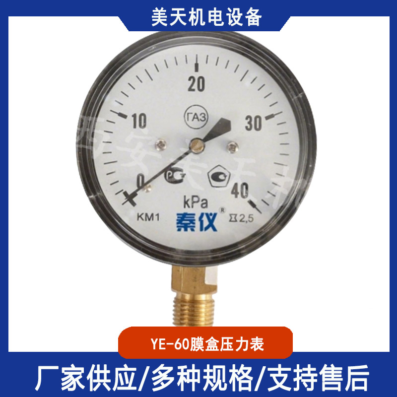 YE-60膜盒压力表 锅炉通风 气体管道微压测量 西安美天机电设备有限公司