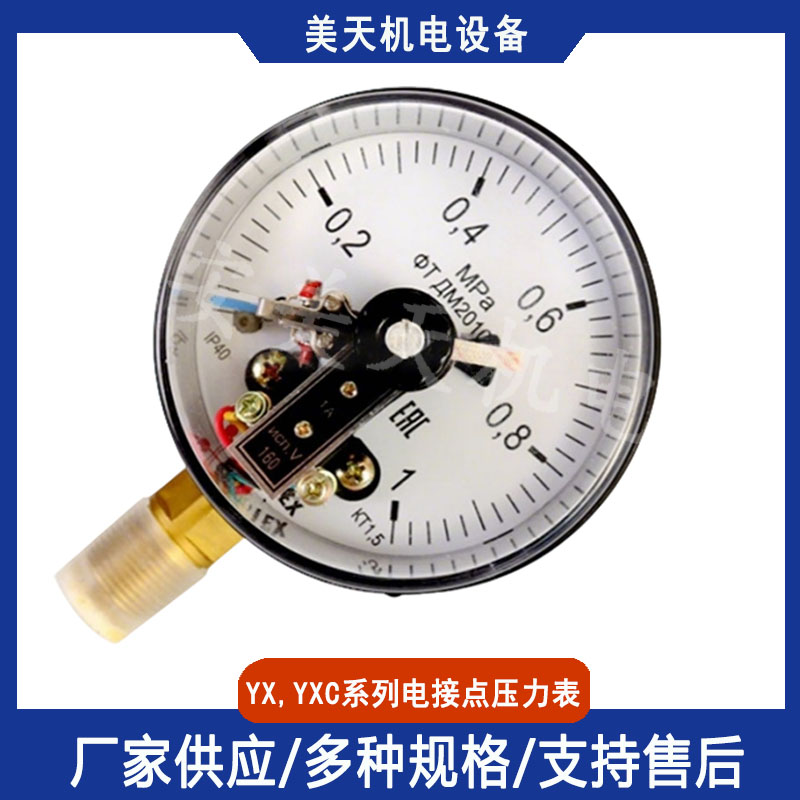 电接点压力表适用于测量对铜合金无腐蚀、无爆炸危险、非结晶的各种液体、气体等介质的压力。仪表经与相应的电气器件配套使用,可达到对被测压力系统实现预先设定的最大或最小压力值的双位自动控制和发信(报 警)的目的。 仪表具有测量控制功能,可任意设定上、下控制压力值,动作稳定可靠,在石油、化工、电站、冶金等工业企业及机电设备上广泛配套使用。