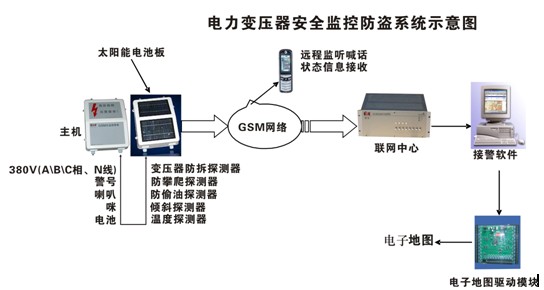 本报警系统具有功能实用,质量优良,工作稳定可靠等特点,适应室内外各种环境(如烈日照射、下雨下雪)使用,广泛应用于农电网、电业局、石油开采、矿山和小区等所有电力设备的安全保护。是目前国内同类产品中最先进的电力安全监控防盗系统。