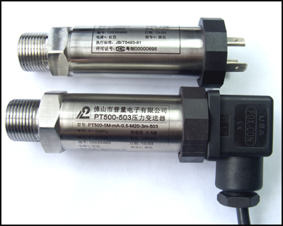 1、产品基本特性: PT500系列压力传感器/压力变送器可测量的介质温度达600℃(环境温度-20~85℃),采用高精度高稳定性耐高温电阻应变计做为变送器的感压芯片,选进的贴片工艺,配套带有零点、满量程补偿,温度补偿的高精度和高稳定性放大集成电路,引压头部分自带降温环形散热片,使用得温度可急速降温,将被测量介质的压力转换成4~20mA、0~5VDC、0~10VDC、0.5~4.5VDC等标准电信号。产品结构采用全封焊结构,使之产品的抗冲击能力、过载能力、产品密封性等性能有了较大提高,产品最高压力可达到60MPa。产品过程连接部分和电气连接部分有多种方式,能够最大限度的满足用户的需求。