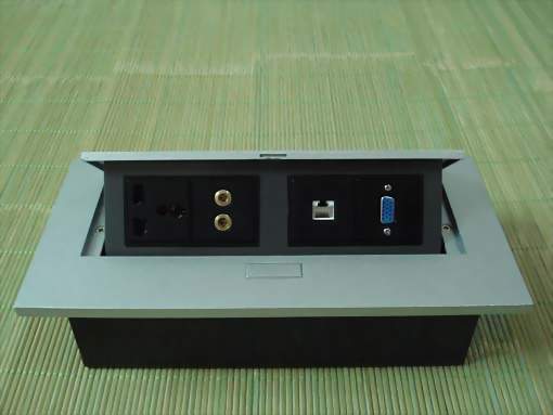 名称 多功能桌面插座(信息接口插座) 型号 200 产品简介 会议室多功能桌面插座6位,任意选择模块 面板尺寸:266×130×68mm 底盒尺寸:220×106×60mm 颜色:磨砂黑、银色、木纹色