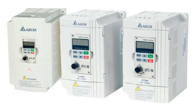 台达M系列--高功能低噪音迷你型交流马达驱动器   变频器是运用近代电力电子与微电脑控制技术的一项新兴产品,主要用在各种工业和民生的机械设备上。其用途在于借着它改变供电频率,来控制电机转速,进而达到提升机械自动化程度与节约能源的目的。   台达M系列---高功能低噪音迷你型变频器,具有体积小、低速力矩大、性能完善、使用方便等特点。    可广泛应用于小型恒压供水系统、产业机械、工业自动化控制等各种应用领域。 主要功能及特点: 体积小,使用方便; V/F及Sensorless向量控制; 1.0Hz,150%以上额定转矩输出; 内置PID功能; 计数器功能; 多段速及自动程序运转; 简易定位; 累计电机运行时间; 自动侦测(Autotunning)电机参数; 摆频功能; 散热风扇运行模式设定; 主,辅频率控制; 睡眠功能; 节能运转; RS485通讯接口,支持Modbus协议等