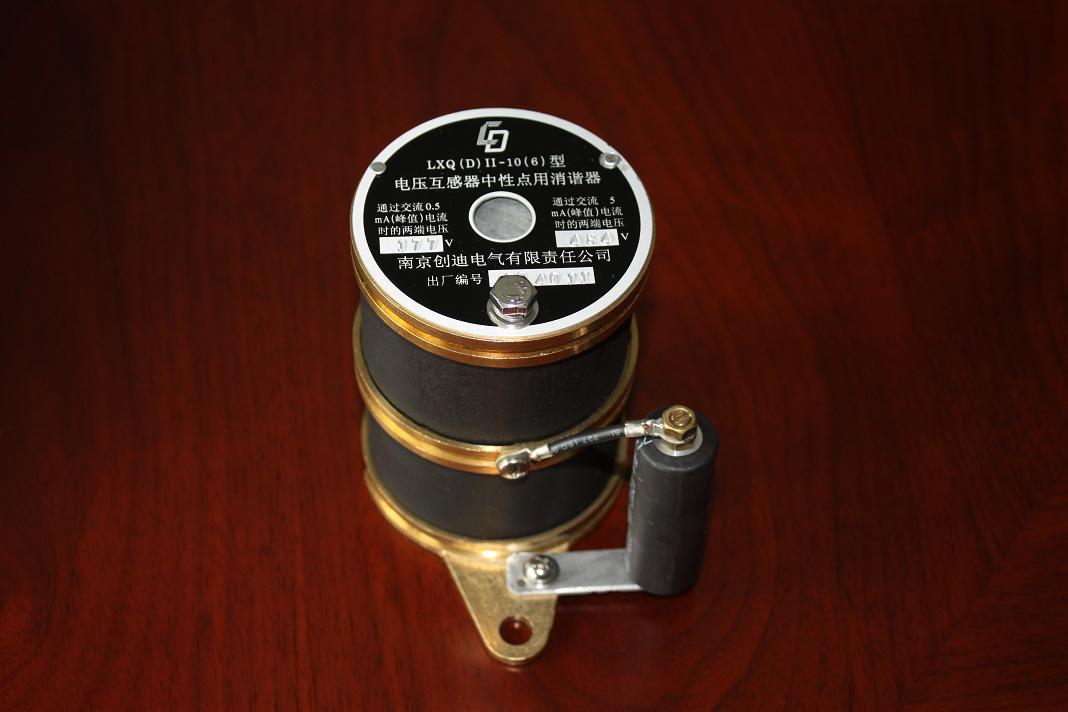 LXQ(D)II-10(6)消谐器是使用在弱绝缘电压互感器中性点用的一次消谐器。为南京创迪电气专利产品。LXQ(D)II-10(6)型一次消谐器可以有效防止PT铁磁谐振或高压熔丝熔断。