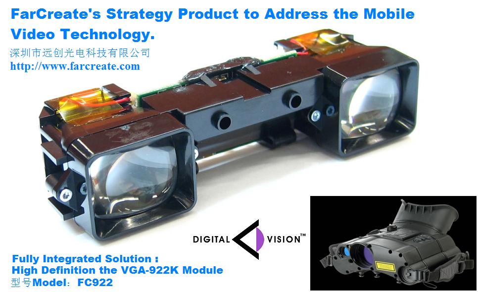 为因应现代军事、工业、医疗、安防等在特殊环境中对视像的需要,FC1440-高清晰单目集成LCOS微型显示器模组以高集成特点帮助加快客户基于微显示技术的产品开发的目的而设计,集成并封装有1个SVGA像素的微显示芯片、光源系统、高性能光学引擎、以及图像驱动控制电路。该显示模组可以虚拟出相当于2米远处60英寸的画面,图像清晰(800H×600V)×RGB,1440K(144万)像素,AV接口或VGA接口,体积小巧,可以方便快捷的应用到客户的产品开发设计中;