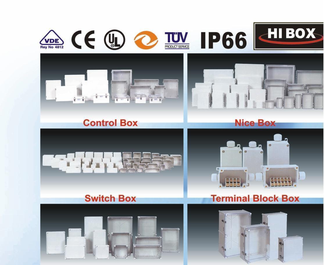 韩国DSE HIBOX防水开关箱,接线盒(采用ABS、PC、Polyester、AC、UV和耐火材料等材料制成。产品中包含防EMI辐射、防静电的物质。防水防尘,防护等级IP66,抗冲击IK08。获得德国VDE和TUV标志、欧共体CE标志和美国UL标志。广泛用于电子电气,通信,消防设备,控制配电盘,端子箱,PCB BOX,船舶,石油化工,大型工厂,沿海工厂,码头,水处理设施,环保设备等);