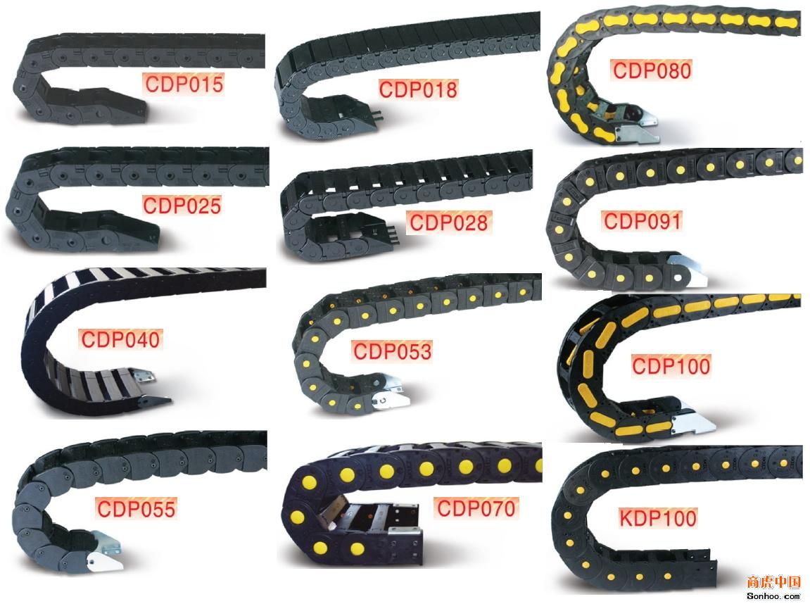 1.使用工程塑料,拖链重量轻、移动灵活、高速移动时噪音小