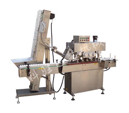 该机种设计新颖独到、机械扭矩控制智能化,并且操作与调节十分便利,操作人员只需将瓶盖置于瓶口上,瓶子在向前运行的过程中,瓶盖被三组搓盖轮自动拧紧。既可用于单机生产,更是连线生产的理想机型。可方便地升级为完全的自动旋盖机ASP,我们有提升式、斜盘式、震荡式等落盖系统,可根据实际需要选配。
