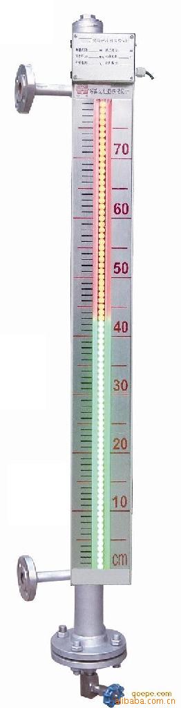 6、液位计投入运行时第一步打开汽相阀门手柄的八分之一,然后停止,再打开液相阀门的手柄的八分之一,以此类推。尤其是该液位计用在压力较高的压力容器上时(如电站锅炉),必须缓慢地注入压力,以防浮子突然受压损坏,使介质慢慢流入主体管,观察液位显示,由红变绿逐个转换。