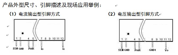 (1)电流输出型产品引脚描述:单列直插12脚(SIP 12)封装