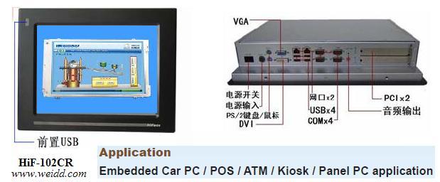 该工业平板电脑采用工业级12.1"真彩液晶显示屏,分辨率800*600(1024*768 可选);内建Intel 酷睿双核1.2GHz 可扩展至 双核1.83GHz 低功耗无风扇处理器 ;硬盘采用独特抗震设计 ;9VDC~24VDC 直流电源输入选配,满足工业现场供电 ;电源提供突发电流保险设计防止因电流过大导致元件损坏