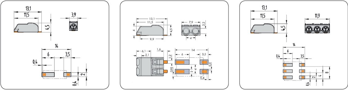 技术参数: 2060-402/998-404 2极 针距 4 mm / 0.157 in RoHS compliant 项目组 3 (多个连接器系统) 颜色 浅灰色 可接导线数量 2 电位数量 2 极数 2 高度 4,5 mm 高度 0,177 in 厚度 7,9 mm 厚度 0,311 in 宽度 13,1 mm 宽度 0,516 in 针距 4 mm 针距 0,157 in 额定指标基于 IEC/EN 60664-1 过电压类别 EN I III 污染等级 2 额定电压 EN 160 V 可承受瞬间峰值电压 2,5 kV 额定电流 EN 9 A 过电压类别 EN II II 污染等级 2 额定电压 EN 320 V 可承受瞬间峰值电压 2,5 kV 额定电流 EN 9 A 过电压类别 EN III III 防护等级 3 额定电压 EN 63 V 额定浪涌电压 2,5 kV 额定电流 9 A 连接方式 CONTACT CAGE CLAMP®CONNECTION 最小可接导线截面积 [mm²] 0,2 - 0,75 mm² 适用导线类型 硬导线 最小可接导线截面积 [mm²] 0,2 - 0,75 mm² 适用导线类型 细多股导线 最小可接导线截面积 [AWG] 24 - 18 AWG 最小剥线长度 6 mm 最大剥线长度 7 mm 剥线长度 [inch] 0,24 in 剥线长度 [inch] 0,28 in 导线进线孔与PCB板的角度 0 ° 材料 I 温度稳定性 -60 °C 至 +105 °C 易燃类别,基于 UL 94 0 V 电镀触头 镀锡     |