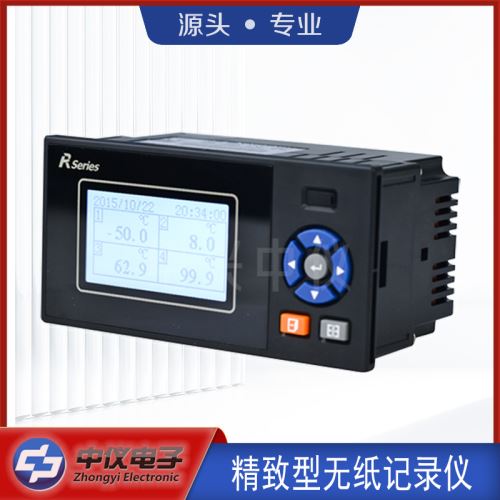 采用高性能的ARM Cortex-M3 32位的RISC内核,配合最大256M大容量的FLASH闪存芯片存贮历史数据,辅以大规模集成电路和图形液晶显示器的新型智能化记录仪表,仪表显示信息量大、兼容性卓越、操作简单、界面友好,可同时实现4路信号采集、记录、显示和2路报警,还可以实现仪表现场总线的通讯、控制功能。 技术参数本公司生产的此款ZYW204RE温度无纸记录仪性能优越,物美价廉。 显示屏幕:128*64点阵白屏液晶显示器(LCD)。 精度:实时显示:±0.2% F.S.、追忆精度:±0.2% F.S.(热电偶应去掉冷端误差)。 处理器四通道温度无纸记录仪采用高性能的ARM Cortex-M3 32位的RISC内核。 输入功能输入规格:最大支持4路万能模拟量输入 电压输入:0-5V、1-5V、0-20mV、0-100mV 电流输入:0-10mA、4-20mA、0-20mA 电阻输入:Res(0~400Ω) 热电阻:PT100、Cu50、G53、Cu100、BA1、BA2 热电偶:S、B、K、T、R、E、N、J 辐射高温计:F1、F2 钨铼:WRe3-25、WRe5-26 注意:其它输入信号(如0-10V)或分度号(如PT1000)需在订货时注明。 误差精度:热电偶冷端补偿误差:±2℃ 时钟误差:±2 秒/天 输出功能配电输出:支持1路给变送器集中配电+24VDC,配电<60mA。 变送输出:最多支持2路通道的4-20mA标准电流变送输出,负载能力500Ω(最大),方便了显示仪表或DCS/PLC的采集,实现了信号的长距离传输。 继电器报警输出:最多支持4路继电器报警输出,触点容量3A@250VAC、3A@30VDC,可组态上上限、上限、下限、下下限报警。 通讯功能通讯接口:提供RS232C和RS485两种通讯接口供用户选择,支持Modbus RTU协议,波特率--(1200、4800、9600、19200、38400、57600) 打印接口:RS232C直接连接微型打印机,波特率1200 供电电源常规供电为AC220V/50Hz交流电源;可支持24VDC(22VDC-32VDC)直流电源供电;支持12VDC(9VDC-18VDC)直流电源供电。 注意:直流供电需在订货时向绍兴中仪电子有限公司业务员说明。 工作环境环境温度:0~50℃(避免日光直晒)。 环境湿度:0~85%R.H(无凝结),禁止在易燃、腐蚀性环境下工作。 海拔高度:<2000米。 仪表净重净重:≤1.0Kg。 记录仪选型| ZYW204RE | -□ | -□ | -□ | -□ | -□ | -□ | 温度无纸记录仪参数说明 |