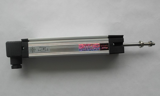 位移传感器的功能是把一个机械位移转换成电气信号,并且该信号能够与机械运动成正比。电刷装配连接到机械激励器,继而使塑料阻轨产生一个电压分配器。电位计的阻轨 (1,3 )连接到稳定的输入直流电压(允许小电流)。当在电刷和修正阻轨之间测量时,信号电压是电压分配器的主要部分,并且与阻轨上的电刷位置成正比。电位计作为一个电压分配器,可以不必着重于阻轨上的总电阻的准确度,因为温度波动只对电阻产生作用,不会影响到测量结果。