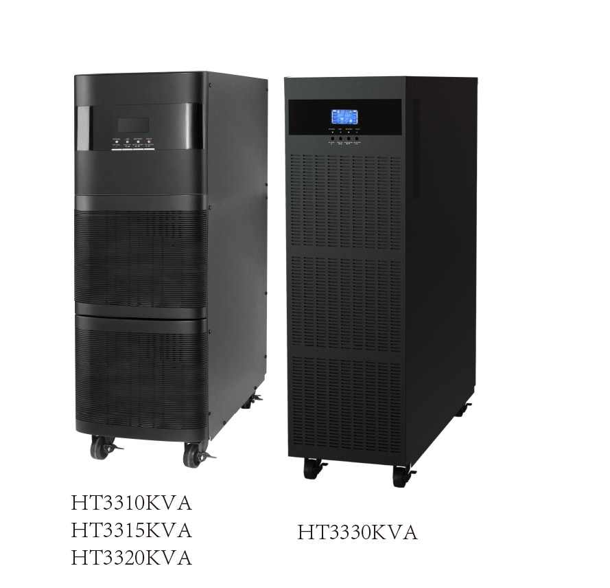UPS电源 HT3315KVA 山顿 产品配置特点  优秀的工业环境防护性能 标配下可以达到IP21的防护等级(防止大于12mm的固体物体侵入,防止垂直滴下的水滴侵入)。为了更高的防尘要求,可选配防尘组件,提高工业环境下的用户防尘等级,保证UPS设备在恶劣的环境下安全的运行。 N+X并机冗余(支持并机共电池) 机器内置并机功能,不需要增加外部附件,就可实现最大8台UPS的并联,方便用户进行低成本的系统扩容。采用了先进的控制策略,在并机冗余工作状态下。 电池充放电的智能化管理 先进的智能化充电方式透过CPU的控制,UPS的充电器可以依据不同的环境条件,修正充电参数,提供最优化的电池充电方式。 高保障的双市电输入功能 根据现场实际用电状况采用双市电输入或单市电输入,使用户的电力供应得到更安全的保障。 高性能的DSP处理器 全数字化的Ti高性能DSP控制技术,使数据处理精确迅速,输出性能将更加优异,可靠性更加提高。 优异的电气性能 整机效率高达93%;提供ECO模式,使效率高达98%以上,降低了UPS的电力损耗。应对中国电网要求设计,提供较宽的输入电压范围210VAC~475VAC。能适用恶劣的电网环境。优异输入频率范围使UPS能适应发电机等不同供电设备。IGBT调频智能整流逆变技术,输入功率因数高达0.99,输入电流谐波低到3%;输出电压电流性能更加优异。 产品技术参数 | 型号 | HT3310KVA | HT33150KVA | HT3320KVA | HT3330KVA | | 额定容量 | 8KW | 12KW | 16KW | 24KW | | 输入 | 电压 | 210—475VAC | | 频率 | 40—70Hz(50Hz和60Hz自适应) | | 相线 | 三相四线+地线 | | THDI | 3% | | 输入功因 | >0.99 | | 双路输入 | 支持 | | 输出 | 电压 | 380×(1±1%)VAC | | 频率 | 50/60Hz | | 相线 | 三相四线+地线 | | 输出功因 | 0.8 | | 过载能力 | 125% 10min | | 效率 | 市电模式 | 93% | | 电池模式 | 93% | | ECO模式 | 98% | | 风扇智能调速 | 有 | | 电池 | 免维护蓄电池 | | 电压 | 240V / 192V定做 | | 显示 | LCD | 电压,电流,频率,电池电压,故障显示,故障,警告 | | LED | UPS运转状态 | | 警告装置 | BUZZER声响及灯号闪烁双重显示 | | 通讯接口 | RS232,AS400,RS485,EPO.电池温度补偿接口,智能插槽 | | 操作环境 | 温度0-40℃湿度≤93%[(40±2)℃,无凝露] | | 重量(Kg) | 38 | 40 | 40 | 64 | | 尺寸(mm) | 592 x 250 x 826 | 815 x 250 x 826 |