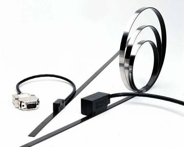 特点 精度高:分辨率可达0.001MM,系统精度0.01MM 信号强:读头输出信号为5VPP或24VPP输出,可以直接给二次设备,如PLC,记数器等 信号输出形式多:PP/OP/LD/TTL; SSI/RS485/RS422 (5V,24V) 1V~~正弦波信号 4-20MA电流信号 0-10VDC 电阻多种形式 磁带磁性稳定,使用寿命长,10年不丢磁 防护等级高:IP67,可直接工作于油,水,100度高温等恶劣环境 安装: 安装要求: ME- 线缆走向必须和动力线分开以减小串入噪声 输入电源 : 电压允差不能超过 +/- 5%. 波纹不超过 50 mV 电气干扰的抑制 : 供电电压不超过额定值的 +/- 5v 波纹电压不超过 50 mV 带 RC 网络的 AC 扼流圈 , 例如 0.1 微法 /100 欧姆,安装自由轮二极管到 DC 线圈, 安置 RC 抑制电机和它的断路线圈 ( 在电机端子盒中 ) 为电子装置提供额外的电力 磁带由 3 个部分组成: 长度从 0.5 到 90 m A 相当柔软的有磁性的尺带 B 铁性的粘合橡胶尺带的柔性基带 . 用于支撑磁带、提供磁场通路,和机床粘合由双面胶带制成 C 此层透磁带用于保护橡胶磁带,可弯曲易于运输,供货时是单独分开的,使用时用双层胶带和橡胶磁带粘合