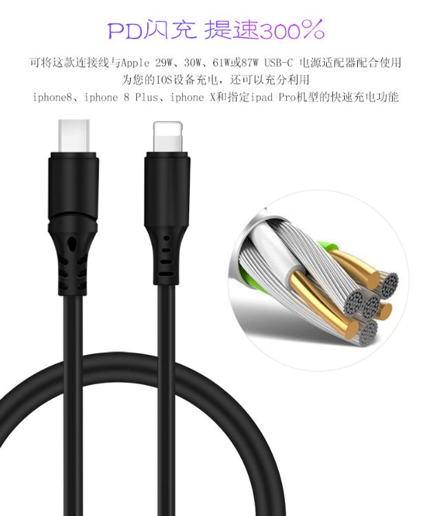 PD快充Type-c转lightning数据线USB-C快充线适用于iphone